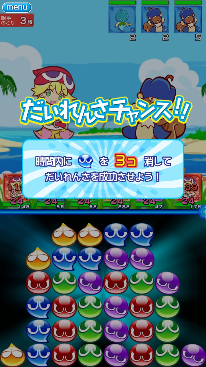ここまではいつもの「ぷよぷよ」のルールなのですが、本作では「だいれんさチャンス」という新しルールが加わりました。