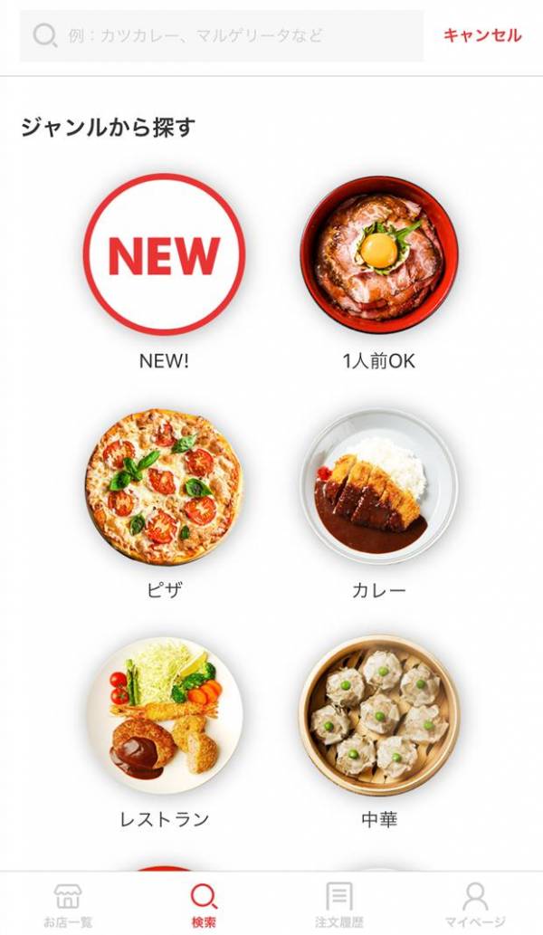 食べたいものや決済方法、配達時間など様々なカテゴリからお店を探せます。