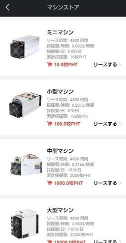 なので「900PHT」を使ってマイニングに必要なマシンをレンタルして仮想通貨を採掘していきましょうというものとなっています。