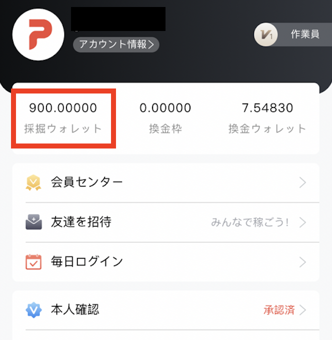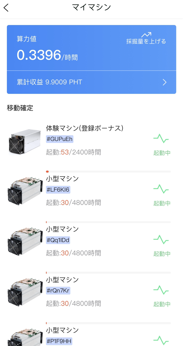 注意点として、この「900PHT」というのは即換金!というわけではなく、マイニングで必要なマシンをレンタルするために使える資金源ということです。
