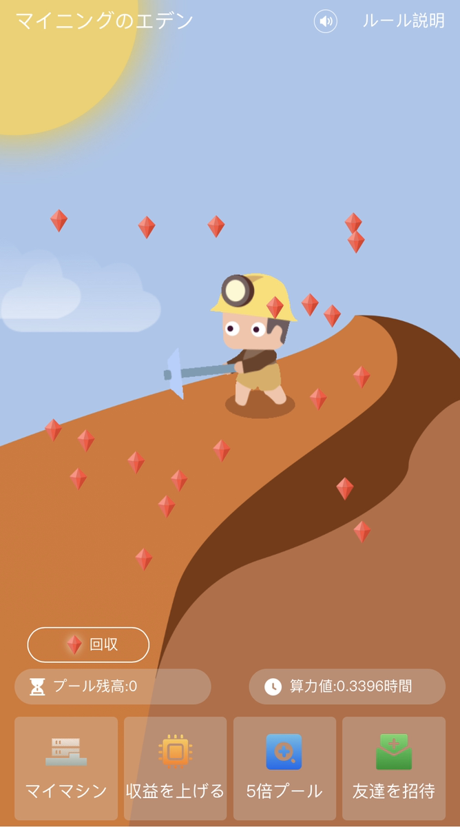 散らばっている赤い宝石(採掘した仮想通貨)を回収します。これで完了です。