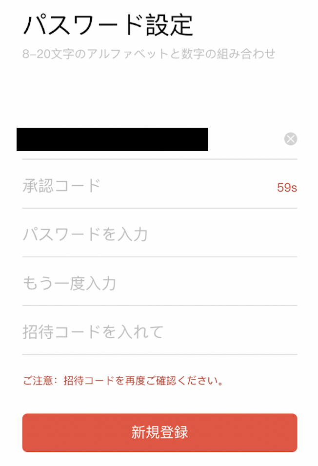 入力したメールアドレスに承認コードが届きますのでそちらを入力します。